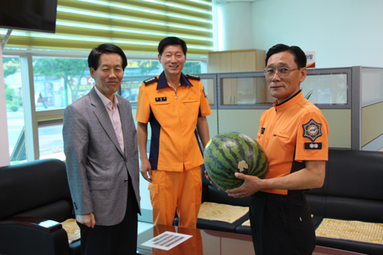 정완택 본부장은 연지119안전센터를 방문해 직원들의 노고를 격려하고 직원들에게 수박을 전달하며 “ 화재 등 각종 재난에 선제적으로 대응하여 도민들이 안심하고 살 수 있는 전라북도를 만들어 나가자”고 말했다.