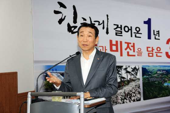 재선에 성공, 민선 6기 정읍시정을 이끌고 있는 김생기시장이 29일 오전 11시 시청 중회의실에서 기자회견을 갖고 그간 성과와 함께 향후 청사진을 제시했다.