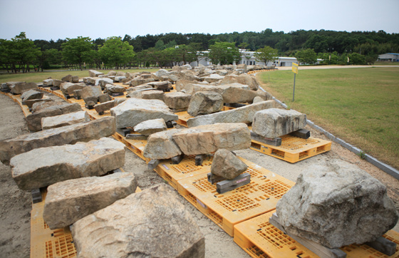 탑들 주변과 주위 들판의 일정구역에 커다란 돌들이 놓여있다.