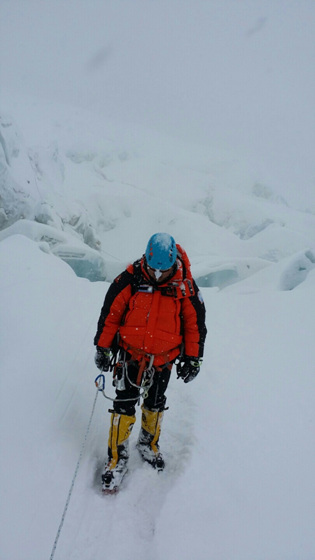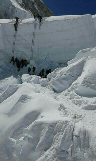 고소적응 훈련을 위해 캠프4까지 있으며 그 위로 에베레스트 정상이다. 나는 아이스폴 지대, 발이 저절로 더덜더덜 떨리게 만드는 사다리 11개, 떨어질까 아찔한 크래바스, 큰 얼음기둥 사이 등을 차례로 숨이 헉헉 막히는 두려움으로 지나가고 있었다.참으로 소중한 우리 대원들이 함께했기에 어려움을 극복할 수 있는 큰 용기를 낼 수 있었다.
