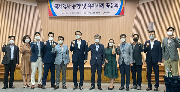 [투데이안] 전북도는 22일 군산 새만금컨벤션센터에서 도내 국제행사 관련 10개 기관과 함께 코로나19 이후를 대비하기 위한 ‘국제행사 동향 및 유치사례 공유회’를 가졌다고 밝혔다.