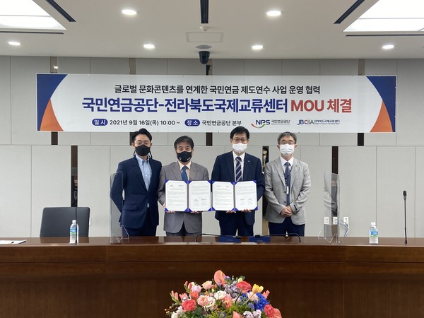 [투데이안] 전라북도국제교류센터(이하 센터)와 국민연금공단(이하 공단)이 글로벌 문화 콘텐츠를 연계한 국민연금 제도연수 사업 운영을 위해 16일 업무협약을 체결했다.